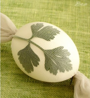 Ja widziałem w sobotę w telewizji jak robili tego typu jajka. Z pietruszką to im nawet jakoś szło, ale przyklejenie na jajko koperku to już była wyższa szkoła jazdy. Nie mniej efekt jest bardzo fajny. Miłego drugiego dnia świętowania!;-)