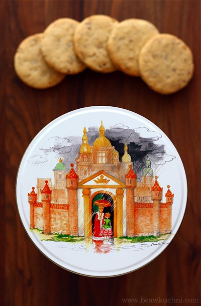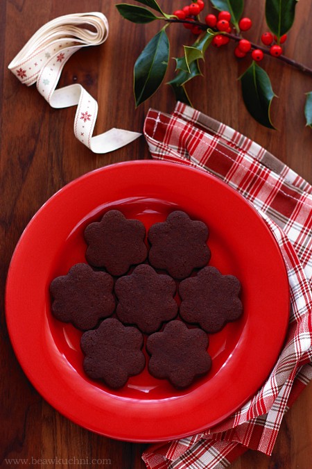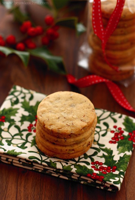 Zamiast formować ciasto w rulon, możemy je nieco rozpłaszczyć i po schłodzeniu rozwałkować na grubość ok. 5-6 mm, a następnie wykrawać ciasteczka foremkami o dowolnym kształcie (ważne jest jednak, by ciasto dobrze uprzednio schłodzić). W obydwu wersjach ciasteczka ładnie się prezentują i z powodzeniem nadają się również jako świąteczny (i nie tylko świąteczny ;)) podarek, przy okazji dołączą więc do świątecznej akcji Cudawianki :)