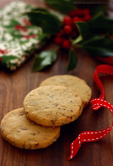 Czy lubicie maślane ciasteczka ? Jeśli tak, to być może i te przypadną Wam do gustu. Delikatne, kruche, rozpływające się w ustach. I do tego pekany i syrop klonowy. Dla mnie to bardzo zimowe smaki. Nie tylko na Święta ;)