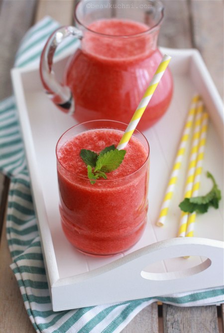 Często, gdy mam kilka czekających na zużycie owoców (lub jeśli muszę ‘wyczyścić’ zamrażalnik z owocowych zapasów), to przerabiam je właśnie na tego typu szybkie dżemy. Małe porcje, których nie muszę pasteryzować, gdyż znikną bardzo szybko, praktycznie w jeden – dwa dni. Gorący dżem wkładam do kilku małych słoiczków i natychmiast na drugi dzień obdarowuję nim znajomych. Idealnie pasuje on do weekendowego śniadania, nie tylko jako dodatek do chleba zresztą (ale o tym pod koniec wpisu).