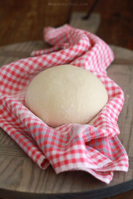 Z ciasta, na lekko podsypanym mąką blacie, uformować 1 lub 2 kulki, przełożyć do miski lub hermetycznego naczynia (używam szklanego) i umieścić na noc w lodówce.