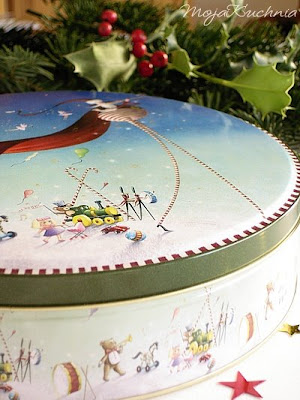 Od pewnego czasu, nie tylko w okresie świątecznym, regularnie odwiedzam ‘przydasiowe’ stoiska w poszukiwaniu między innymi ładnych puszek na ciasteczka. Kilka dni temu, spacerując po moim ulubionym sklepie, zupełnie przez przypadek trafiłam na takie oto pudełka nie na stoisku z przydasiami, a ze świątecznymi ozdobami; co oznacza, że zawsze trzeba mieć oczy szeroko otwarte, by czegoś ciekawego nie przegapić! ;)  Na dodatek, puszki te były w baaardzo promocyjnej cenie, nie mogłam więc nie kupić choć jednej! Tym bardziej, że naprawdę mnie oczarowała : jest zupełnie inna od tych świąteczno-mikołajowych które zazwyczaj zapełniają sklepowe półki. A do takiej pięknej, nowej puszki, trzeba koniecznie upiec jakieś nowe ciasteczka!