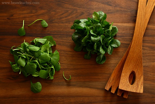 - z typowo zimowych sałat mamy aktualnie do dyspozycji roszponkę (na zdjęciu po prawej) oraz klajtonię przeszytą – Claytonia Perfoliata – (na zdjęciu po lewej). Obydwie zawierają bardzo dużo witaminy C (o wiele więcej niż tradycyjna sałata) szczególnie zimą więc są one bardzo cenne dla naszego organizmu. I roszponkę i klajtonię możemy konsumować również lekko podduszone (jak świeży szpinak) lub w formie zupy-kremu (pyszna!).