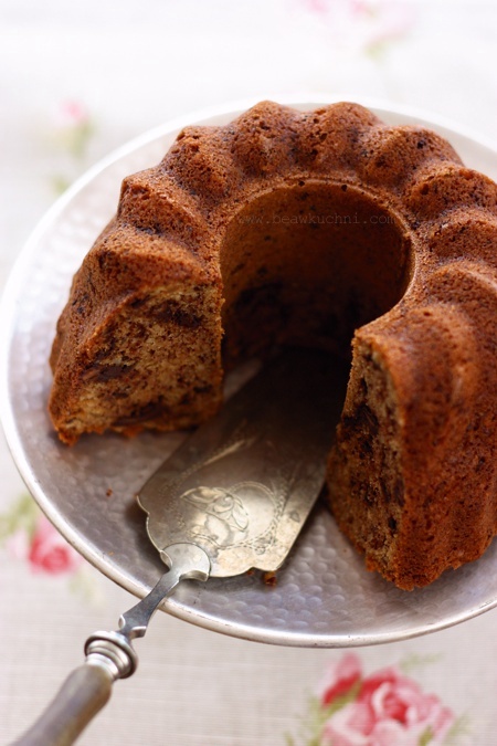 Teraz częściej niż zwykle w mojej kuchni (oprócz dyni ;)) goszczą również orzechy. Zawsze mam gdzieś ‘pod ręką’ pudełeczko z mieszanką orzechów i suszonych owoców, są bowiem zdrową i smaczną przekąską (chciałam też napisać dietetyczną, ale mam wrażenie, że nie wszyscy się w tym miejscu ze mną zgodzą ;)). Lekko uprażonych orzechów używam jako dodatek do sałatek lub kremowych zup czy zapiekanek, nie może ich też rzecz jasna zabraknąć w słodkich wypiekach. Takich jak dzisiejsze ciasto na przykład, które idealnie pasuje do popołudniowej, jesiennej herbaty. I na Orzechowy Tydzień, który w tym roku prowadzi dla nas Atina :)