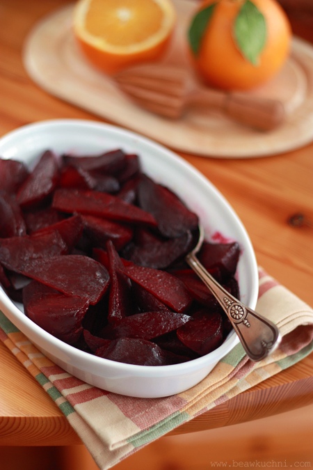 Tego typu warzywa wyjątkowo dobrze smakują pieczone, potęguje to bowiem ich smak i aromat. Tym razem małe buraki (pokrojone w ósemki) upiekłam skropione oliwą, z dodatkiem soku z pomarańczy i odrobiny mielonego kuminu, co nawet ‚nie-warzywnym’ osobnikom wyjątkowo przypadło do gustu ;)