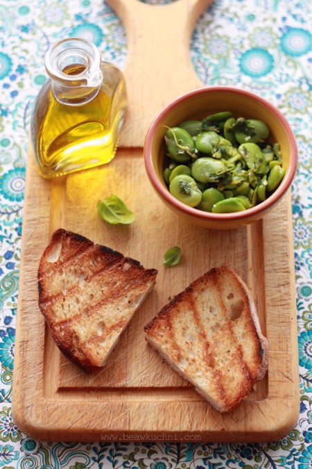 W wersji bardziej sytej – z dodatkiem kremowego serka i rzodkiewek, w wersji ‘biedniejszej’ ;) z samym bobem i pecorino. A do tego oczywiście nasza ulubiona oliwa oraz zioła :)