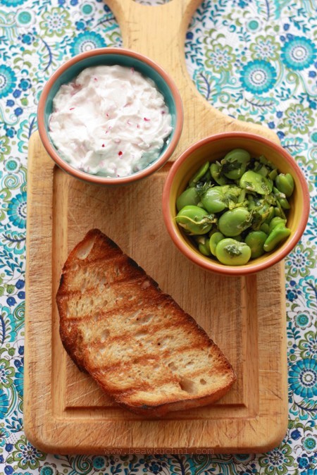 Grzanki z bobem i serowo-rzodkiewkowym kremem