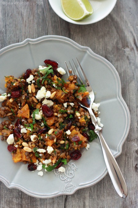 - danie to możemy też podać w formie sałatki (może to być np. ‘resztkowy’ lunch do pracy ;)), a dodatek orzechów i żurawiny naprawdę idealnie tutaj pasuje