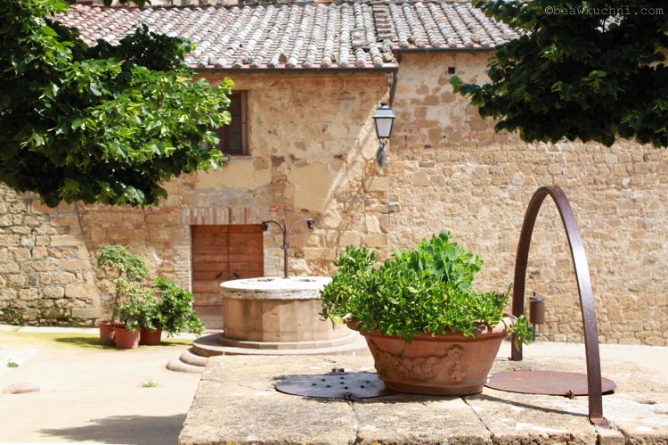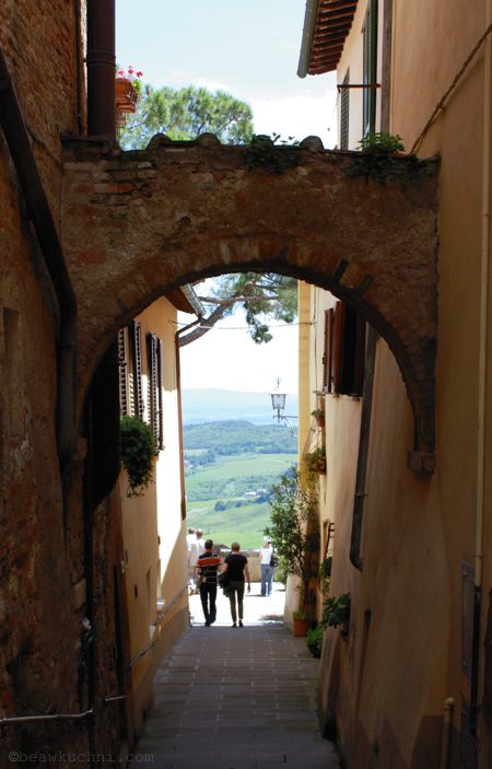 Jeśli przez przypadek śledzicie australijską wersję Masterchefa (nota bene dla mnie to zdecydowanie najlepsza wersja tego programu jaka istnieje…), to może pamiętacie, iż dwa lata temu, podczas ich włoskiej wyprawy, to właśnie w Monticchiello rozegrano jeden z odcinków (nagminnie pisząc wszędzie Monticello ;)). Kandydaci mieli najpierw przygotować tamtejszy typowy makaron pici, a następnie cały posiłek dla mieszkańców miasteczka. Nie mogłam więc odmówić sobie przyjemności i nie zawitać do tego maleńkiego, lecz wielce urokliwego miasteczka (regularnie przybywają tam nowożeńcy, a w dniu naszego pobytu w Monticchiello był tam akurat ślub polskiej pary – świat jest mały :)).