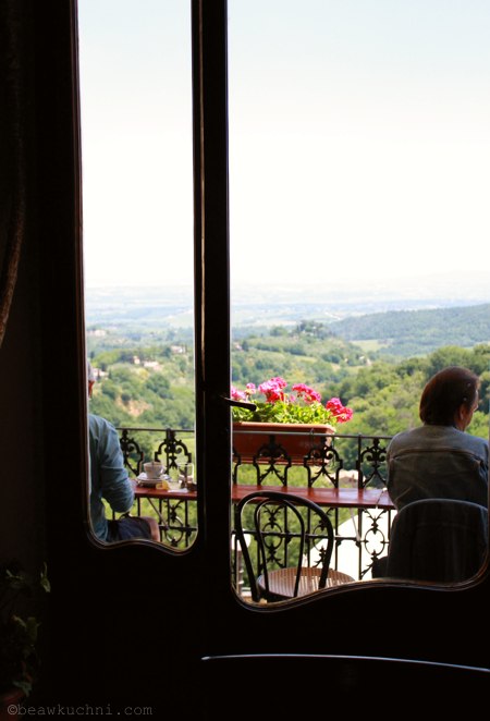 Przy wejściu / wyjściu z miasteczka warto też zatrzymać się na tarasie baru La Guardiola (Wine Bar / Lounge), choć ceny przekąsek są tam niestety dosyć wygórowane (4 malutkie kawałki pecorino do degustacji kosztują tutaj 10 euro, a w Montalcino np. za praktycznie potrójną - poczwórną porcję płacimy 13 euro…). Na szczęście kawa i wino w całkiem ‘normalnej’ ;) cenie, a do tego miła obsługa i absolutnie niesamowite widoki na dolinę…