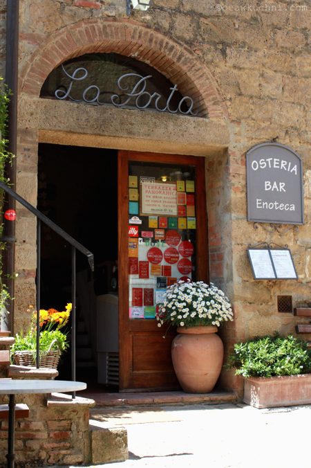 Clou naszej wyizyty w Monticchiello była Osteria La Porta (tuż przy wejściu do miasteczka, przy głównej bramie średniowiecznych murów – skąd jej nazwa; zamknięte w czwartki), w której bez wątpienia należy się zatrzymać.