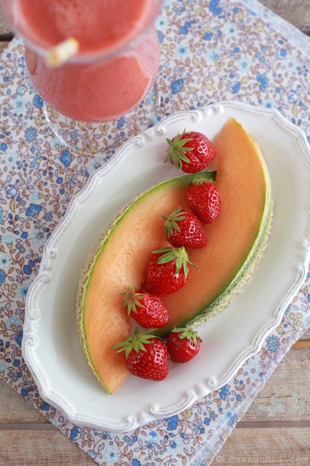 (lubiącym melona przypominam również tę oto ‚zupę’ owocową – klik, również w połączeniu z truskawkami właśnie)